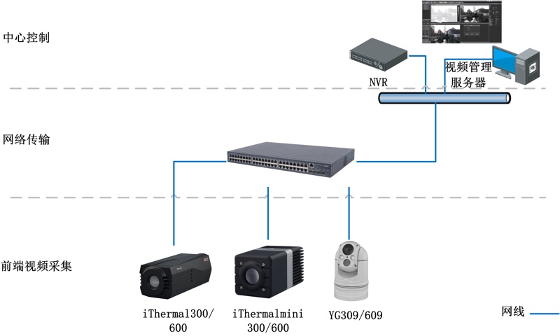 系統由前端雙波段攝像機,網絡傳輸和后端監控室組成。